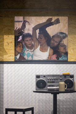 Wie ein Katalysator wirkt {Leonie Berner} in dieser Menschengruppe mit unerfüllten und unerfüllbaren Hoffnungen. Witzig der Odachlose Puttgam (Elisbeth Kanettis, die sich auch an den Synthesizer setzt und für die Livemusik sorgt) – der brotlose Künstler ist vielleicht gar besser dran als die vermeintlich „bürgerlichen“ auf der Verliererstraße. Ambitioniert das weitere Ensemble (Sophia Fischbacher, Fabian Cabak, Angie Mastoraki, Michael-Lorenz Brandner), das in der zwischen Expressivität und Groteske pendelnden Inszenierung eher nicht zur Zurückhaltung angehalten ist.
